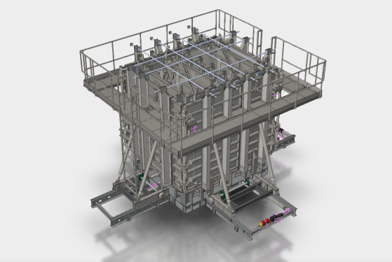 Проект многоэтажного жилого дома в Восточной Азии: в этом проекте была использована консольная опалубка для удовлетворения потребностей в опалубке. Система, поднимаемая башенными кранами, позволяет одновременно поднимать опалубку и кронштейны, обеспечивая быструю, простую и безопасную работу. Благодаря низким затратам на строительство, система обеспечивает высокую эффективность и строгий контроль затрат. Применимо к внутренним и наружным стенам, простенкам, колоннам большого и нестандартного сечения, опорам мостов и силосным башням, обеспечивая надежное решение для опалубки, опор и рабочих площадок для вертикальных бетонных конструкций.