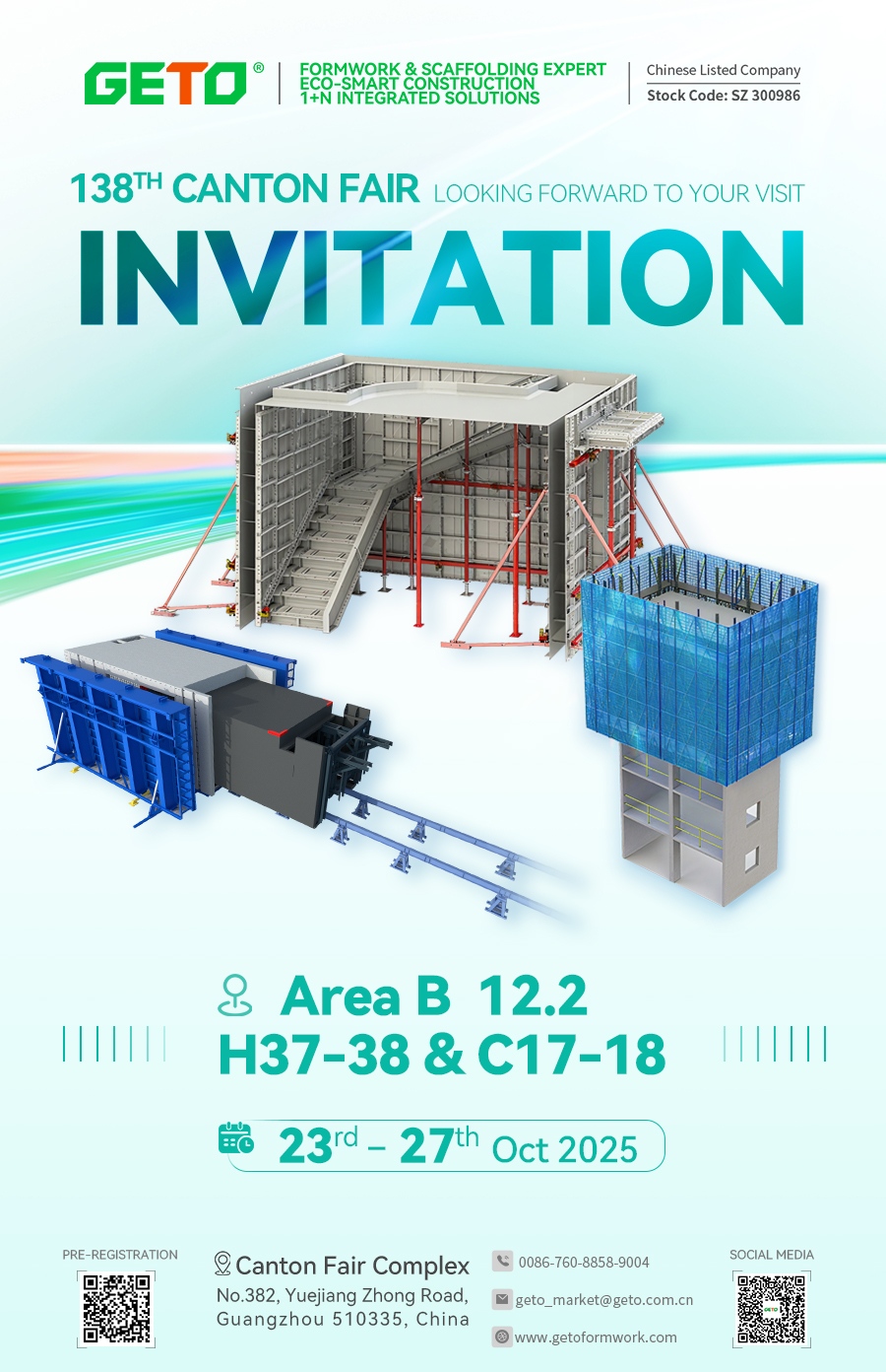 Золотой октябрь, встречайте в Гуанчжоу! 138-я Китайская ярмарка импортных и экспортных товаров (Кантонская ярмарка) пройдёт с 23 по 27 октября 2025 года в выставочном комплексе Кантонской ярмарки. Компания GETO New Materials приглашает вас посетить наш стенд и вместе познакомиться с последними инновациями в строительной отрасли и новыми возможностями для международного сотрудничества.