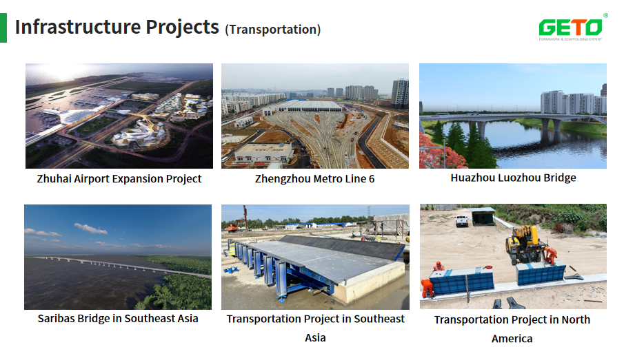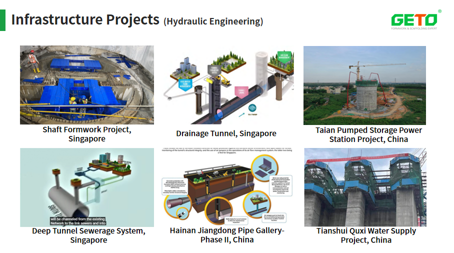 В условиях глобального перехода на экологически чистую энергетику и волны модернизации инфраструктуры компания GETO Formwork (биржевой код: SZ 300986) стала основным партнером в сложных инженерных областях, таких как мосты, туннели, инженерные туннели, метрополитены, аэропорты, проекты по водному хозяйству, подземные здания электростанций и т. д.