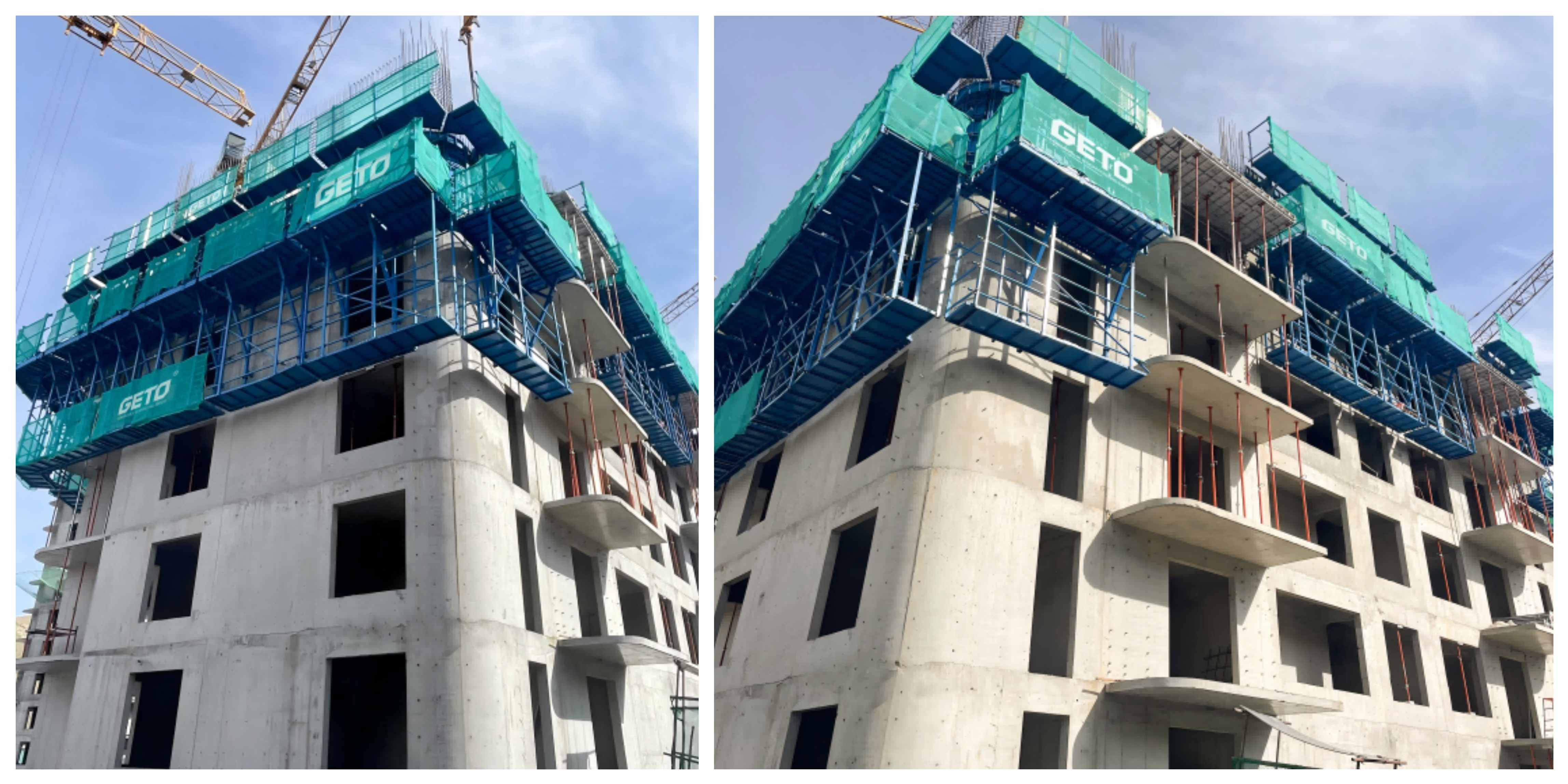 Внешние стены проекта включают множество оконных проёмов, криволинейные секции стен и консольные перекрытия, что создаёт трудности для традиционных опалубочных систем, требующих как точности, так и гибкости. Для решения этих задач инженерная группа GETO разработала индивидуальное решение для подъёмно-переставной опалубки , обеспечивающее эффективность строительства и контроль затрат при соблюдении высоких стандартов безопасности и качества.